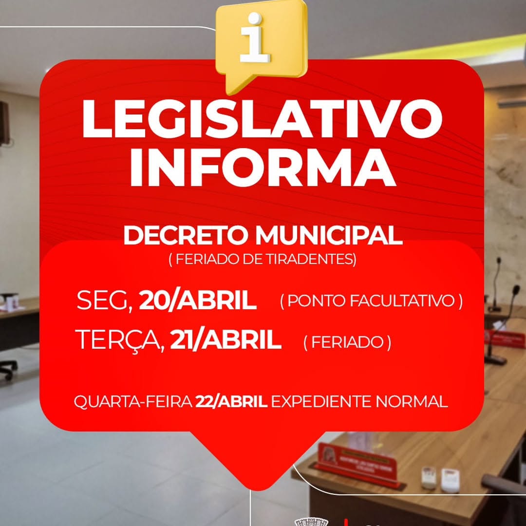 De acordo com a programação estabelecida, a segunda-feira, 20 de abril, será considerada ponto facultativo. Na terça-feira, 21 de abril, as atividades serão suspensas em observância ao feriado. O expediente normal será retomado na quarta-feira, 22 de abril, com o atendimento ao público e as rotinas internas operando regularmente.