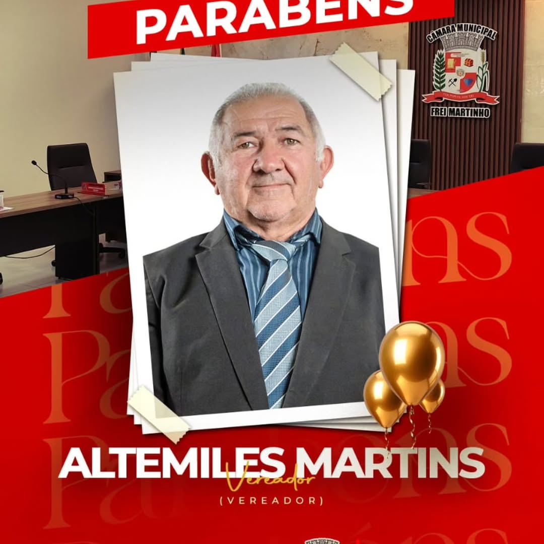 A Câmara Municipal de Frei Martinho expressou, nesta data, suas congratulações ao vereador Altemiles Martins, por ocasião de seu aniversário. A homenagem formal reflete o reconhecimento do Legislativo ao trabalho e dedicação do parlamentar em prol da comunidade freimartinhense.