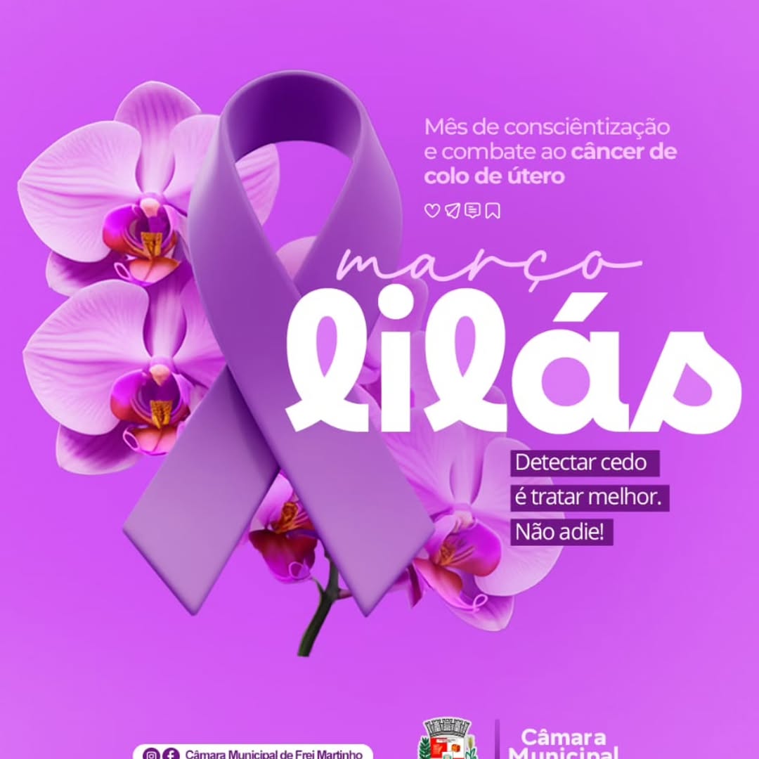 A Câmara Municipal adere à campanha Março Lilás, um mês dedicado à conscientização e combate ao câncer do colo do útero. A iniciativa reforça a importância da prevenção e do diagnóstico precoce da doença, elementos cruciais para a eficácia do tratamento e para salvar vidas. A instituição destaca seu apoio integral a essa causa fundamental para a saúde pública feminina.